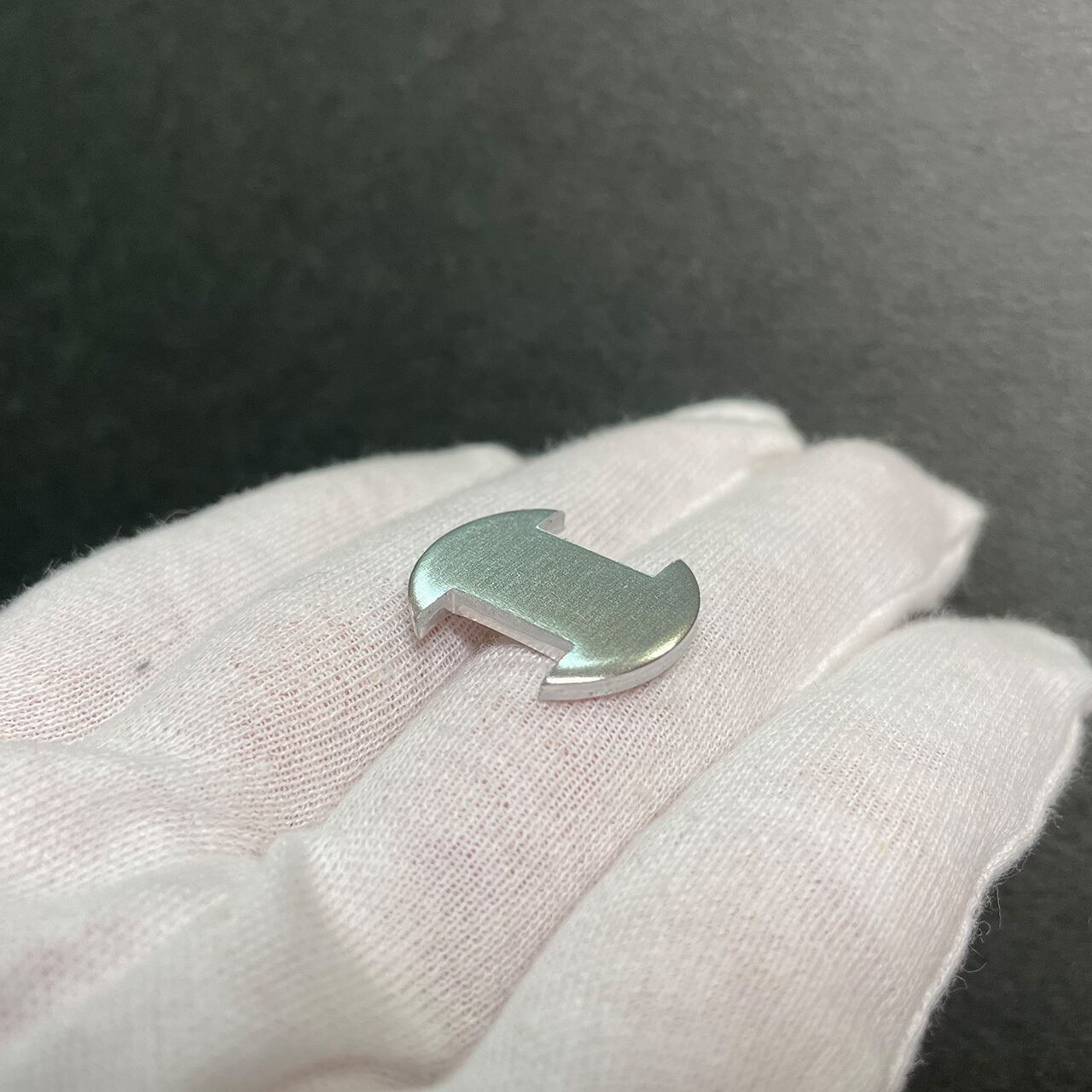 商品説明:アルミのプレス加工時に出る端材です。矢印のような形で表面はエッジが滑らかになっています。