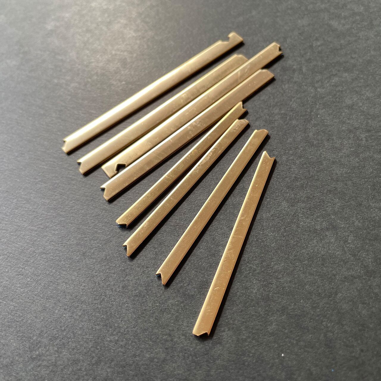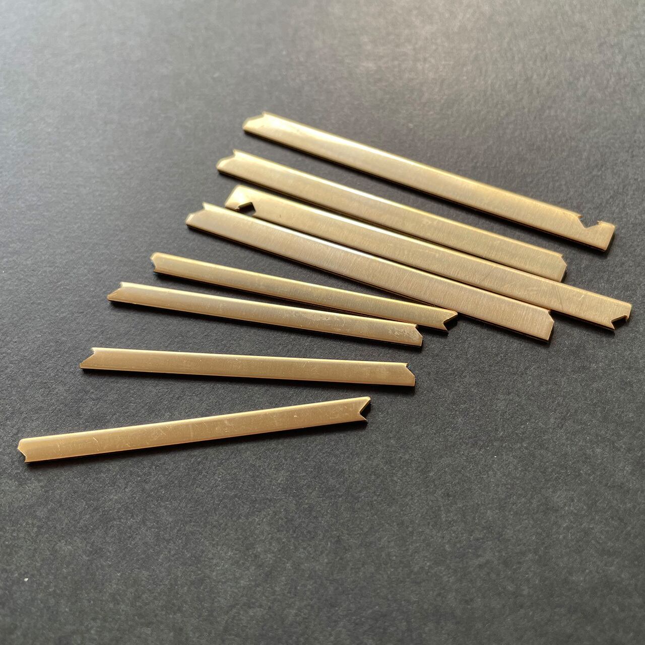 ・商品の状態:プレス加工時の端材のため、主に裏側にバリ(エッジのトゲ)が出ています。また両端は鋭利になっているため、取り扱いの際には十分にご注意ください。多少のキズや汚れがあります。